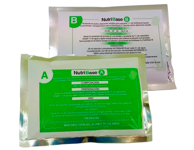 Nutribase A y Bcontienen Nitrógeno, Potasio, Fósforo, Calcio y Microelementos.